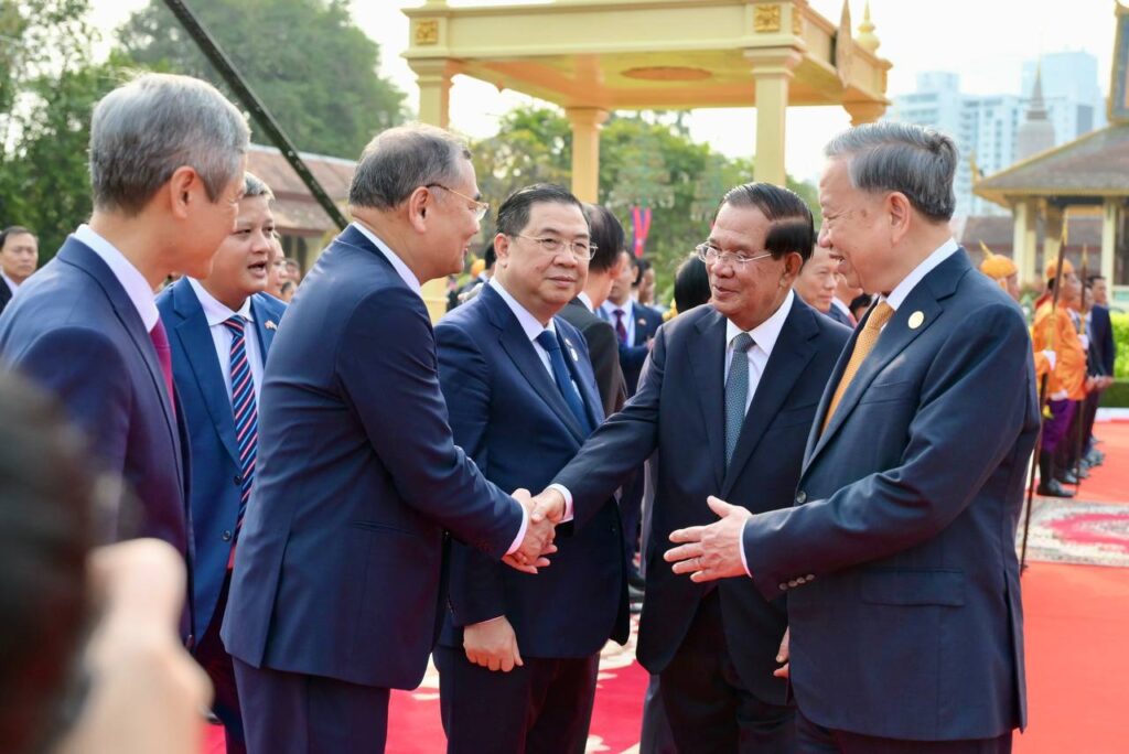 នៅព្រឹកថ្ងៃសុក្រ ទី៦ ខែកុម្ភៈ ឆ្នាំ២០២៦ នេះ ឯកឧត្តមអភិសន្តិបណ្ឌិត ស សុខា ឧបនាយករដ្ឋមន្ត្រី រដ្ឋមន្ត្រីក្រសួងមហាផ្ទៃ បានអញ្ជើញចូលរួមអមដំណើរសម្តេចអគ្គមហាសេនាបតីតេជោ ហ៊ុន សែន ប្រធានព្រឹទ្ធសភា នៃព្រះរាជាណាចក្រកម្ពុជា និងជាព្រះរាជតំណាងដ៏ខ្ពង់ខ្ពស់បំផុតរបស់ព្រះករុណា ព្រះបាទ សម្តេចព្រះបរមនាថ នរោត្តម សីហមុនី ព្រះមហាក្សត្រ នៃព្រះរាជាណាចក្រកម្ពុជា ទទួលបដិសណ្ឋារកិច្ចស្វាគមន៍ឯកឧត្តម តូ ឡឹម អគ្គលេខាធិការបក្សកុម្មុយនីស្តវៀតណាម និងគណៈប្រតិភូជាន់ខ្ពស់ អញ្ជើញបំពេញទស្សនកិច្ចផ្លូវរដ្ឋ នៅព្រះរាជាណាចក្រកម្ពុជា។ ពិធីទទួលបដិសណ្ឋារកិច្ចនេះ ប្រព្រឹត្តទៅនៅព្រះបរមរាជវាំង រាជធានីភ្នំពេញ។