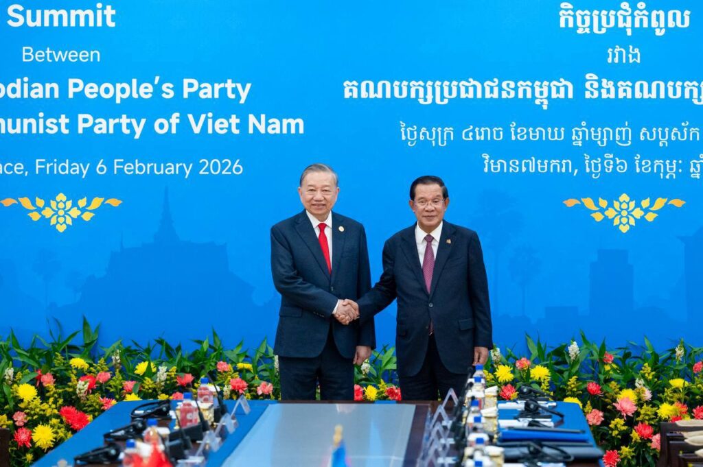 នៅព្រឹកថ្ងៃសុក្រ ទី៦ ខែកុម្ភៈ ឆ្នាំ២០២៦ នេះ ឯកឧត្តមអភិសន្តិបណ្ឌិត ស សុខា សមាជិកគណៈអចិន្ត្រៃយ៍ នៃគណៈកម្មាធិការកណ្តាលគណបក្សប្រជាជនកម្ពុជា បានអញ្ជើញចូលរួមកិច្ចប្រជុំកំពូល រវាងគណៈកម្មាធិការអចិន្ត្រៃយ៍ នៃគណៈកម្មាធិការកណ្តាលគណបក្សប្រជាជនកម្ពុជា និងការិយាល័យមជ្ឈិមបក្សកុម្មុយនីស្តវៀតណាម ក្រោមអធិបតីភាពដ៏ខ្ពង់ខ្ពស់សម្តេចតេជោ ហ៊ុន សែន ប្រធានគណបក្សប្រជាជនកម្ពុជា និងឯកឧត្តម តូ ឡឹម អគ្គលេខាធិការបក្សកុម្មុយនីស្តវៀតណាម នៅវិមាន ៧មករា រាជធានីភ្នំពេញ។