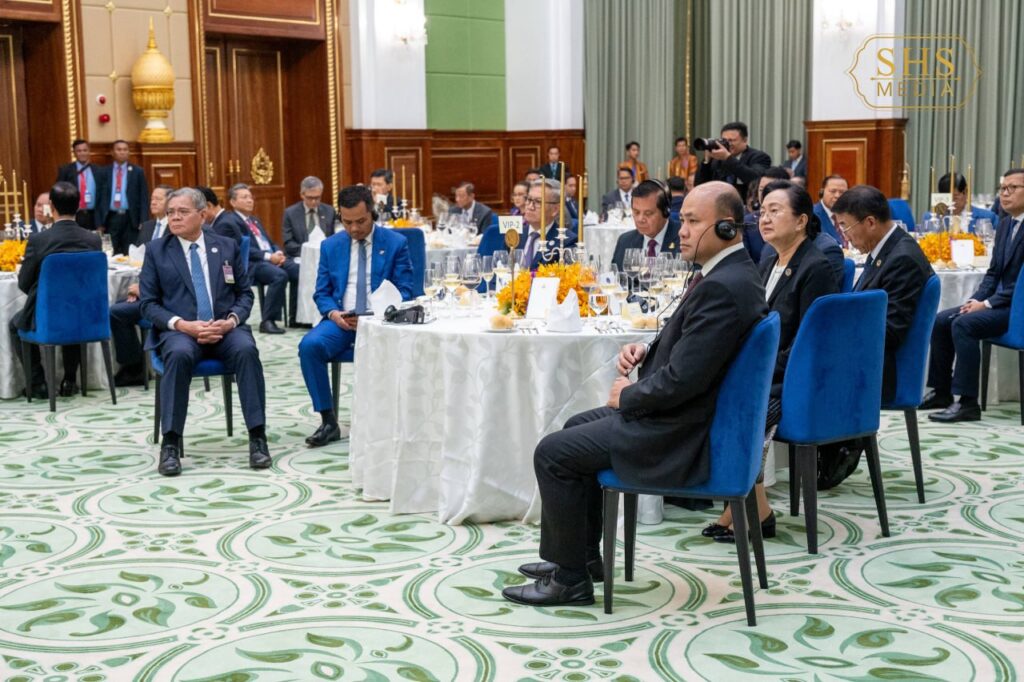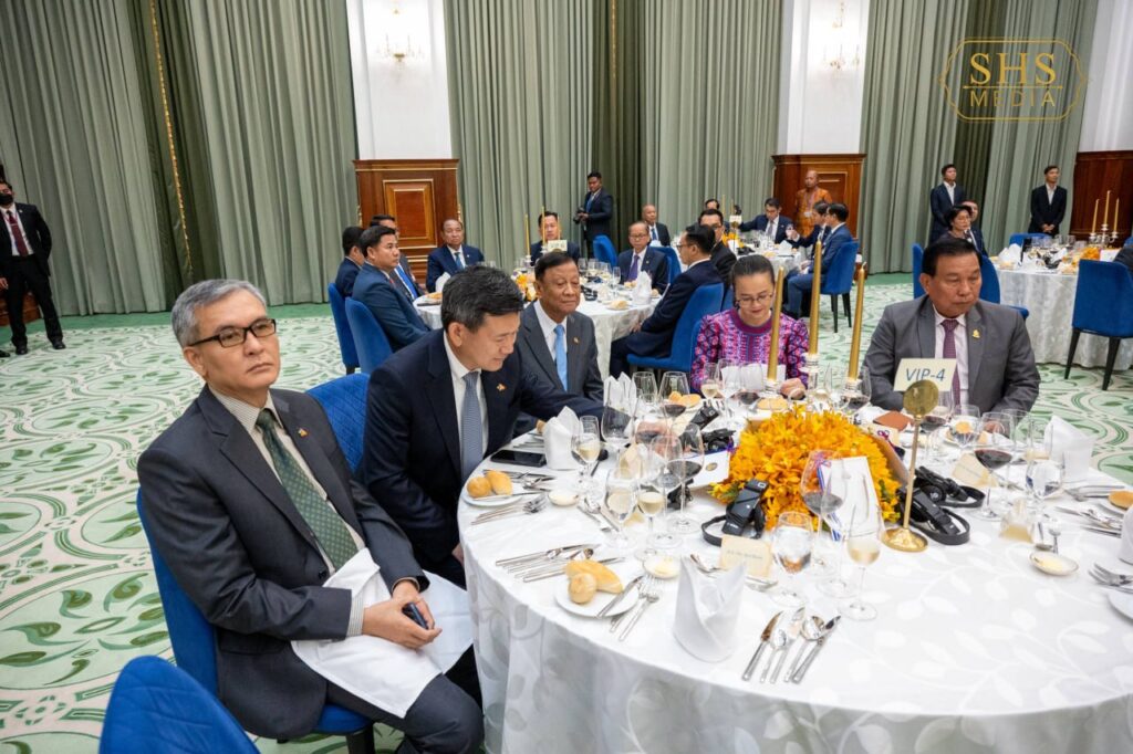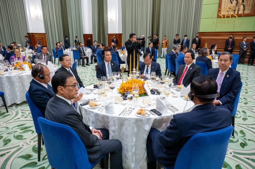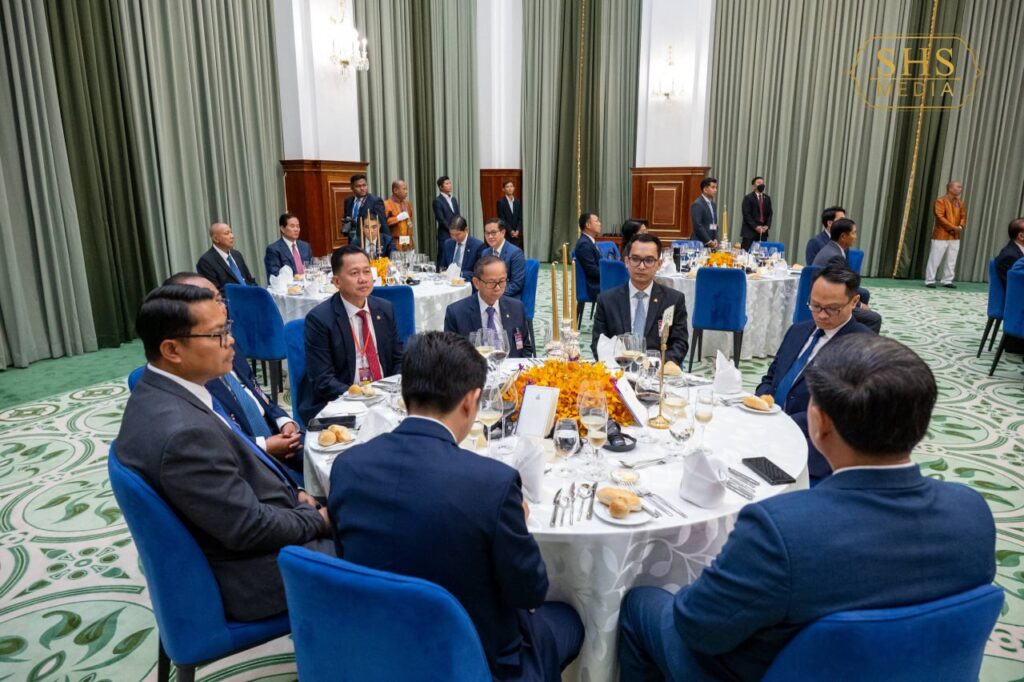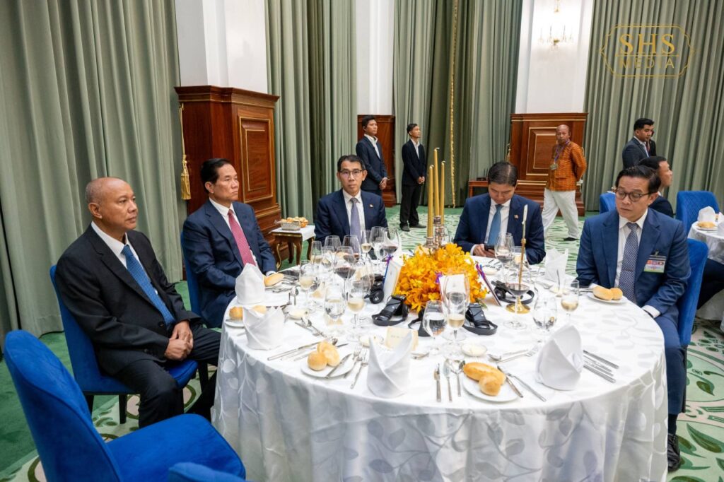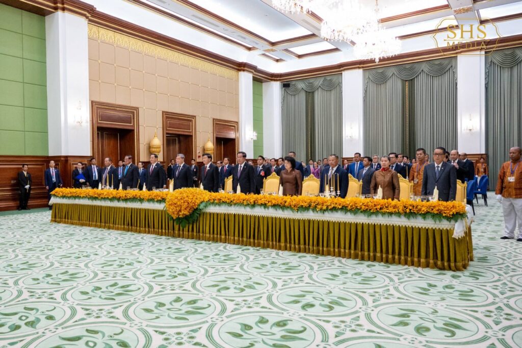 សម្តេចអគ្គមហាសេនាបតីតេជោ ហ៊ុន សែន ប្រធានព្រឹទ្ធសភានៃព្រះរាជាណាចក្រកម្ពុជា ក្នុងព្រះបរមនាម ព្រះករុណា ព្រះបាទសម្តេចព្រះបរមនាថ នរោត្តម សីហមុនី ព្រះមហាក្សត្រនៃព្រះរាជាណាចក្រកម្ពុជា បានរៀបចំពិធីលៀងភោជនាហារផ្លូវរដ្ឋជាកិត្តិយស ជូន ឯកឧត្តមបណ្ឌិត ថងលុន ស៊ីសុលីត(Thongloun Sisoulith) អគ្គលេខាធិការបក្សប្រជាជនបដិវត្តន៍ឡាវ និងជាប្រធានរដ្ឋនៃសាធារណរដ្ឋប្រជាធិបតេយ្យប្រជាមានិតឡាវ ក្នុងឱកាស ឯកឧត្តម និងគណៈប្រតិភូ អញ្ជើញបំពេញទស្សនកិច្ចផ្លូវរដ្ឋនៅព្រះរាជាណាចក្រកម្ពុជា នាថ្ងៃសៅរ៍ ៥រោច ខែមាឃ ឆ្នាំម្សាញ់ សប្តស័ក ព.ស. ២៥៦៩ ត្រូវនឹង ថ្ងៃទី៧ ខែកុម្ភៈ ឆ្នាំ២០២៦។