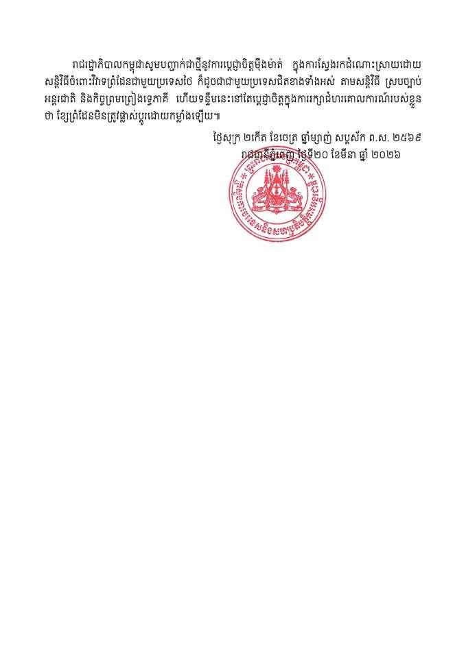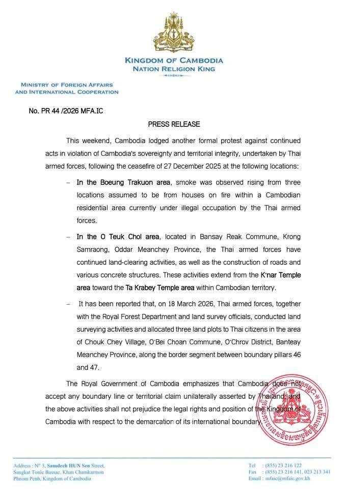 kpostnews - ព័ត៌មានថ្នាក់ជាតិ សេចក្ដីប្រកាសព័ត៌មានរបស់ក្រសួងការបរទេស និងសហប្រតិបត្តិការអន្តរជាតិ March 21, 2026 - By kpostnews