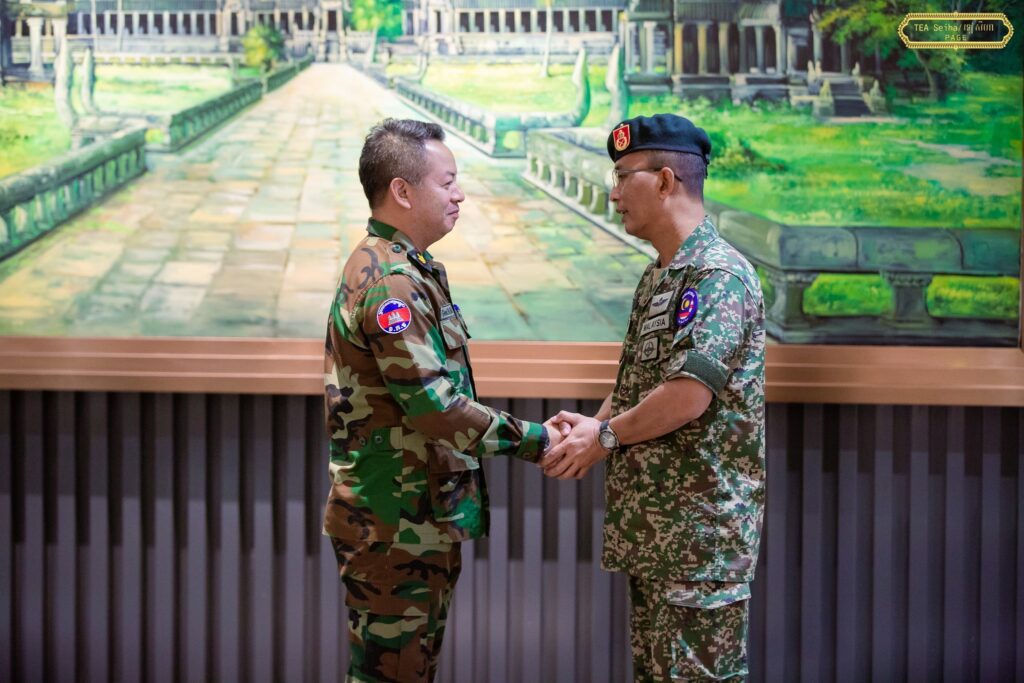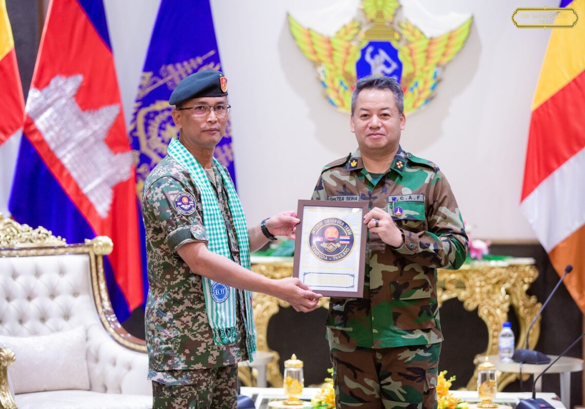 រសៀលថ្ងៃព្រហស្បតិ៍ ទី១១ ខែកញ្ញា ឆ្នាំ២០២៥ ក្រសួងការពារជាតិ នៃព្រះរាជាណាចក្រកម្ពុជា បានសម្របសម្រួលជូនក្រុមអ្នកសង្កេតការណ៍អន្តរកាល (IOT) ដឹកនាំដោយ ឧត្តមសេនីយ៍ត្រី Dato’ Pahlawan Asri bin Shukor ប្រធានបេសកកម្ម IOT (HOM) និងសមាជិក បានអញ្ជើញធ្វើដំណើរពីរាជធានីភ្នំពេញឆ្ពោះទៅទីស្នាក់ការ ប្រចាំនៅខេត្តព្រះវិហារ និងខេត្តបន្ទាយមានជ័យ ដើម្បីចុះទៅសង្កេតការណ៍ ផ្ទៀងផ្ទាត់ និងរាយការណ៍ អំពីស្ថានភាពព្រំដែនក្រោយបទឈប់បាញ់។ On Thursday afternoon, 11 September 2025, the Ministry of National Defence of the Kingdom of Cambodia facilitated the Interim Observer Team (IOT), comprising representatives from Brunei, Indonesia, Laos, Malaysia, the Philippines, Singapore, and Vietnam. The team, led by Brigadier General Dato’ PahlawanAsri bin Shukor, Head of Mission (HOM) of the IOT, departed from Phnom Penh to the Team Sites at Preah Vihear and Banteay Meanchey provinces in order to observe, verify, and report on the situation following the Ceasefire Agreement.