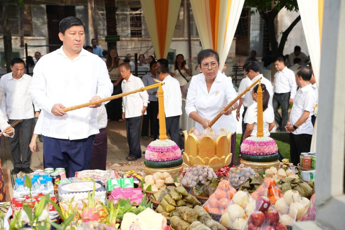 ឯកឧត្តមឧបនាយករដ្ឋមន្ត្រី សាយ សំអាល់ តំណាងដ៏ខ្ពង់ខ្ពស់សម្តេចមហាបវរធិបតី ហ៊ុន ម៉ាណែត នាយករដ្ឋមន្ត្រីនៃកម្ពុជា រួមនឹងលោកជំទាវបណ្ឌិតសភាចារ្យ ភឿង សកុណា រដ្ឋមន្ត្រីក្រសួងវប្បធម៌ និងវិចិត្រសិល្បៈ បាននិមន្តព្រះសង្ឃ សូត្រមន្ត រាប់បាត្រ បង្សុកូលឧទ្ទិសកុសលផលបុណ្យ ដល់ដួងវិញ្ញាណក្ខន្ធជនរងគ្រោះ ដែលបាត់បង់ជីវិត ជាង១ម៉ឺន៨ពាន់នាក់ នៅមជ្ឈមណ្ឌលប្រល័យពូជសាសន៍ទួលស្លែង ក្នុងវេនកាន់បិណ្ឌ៦នេះ។