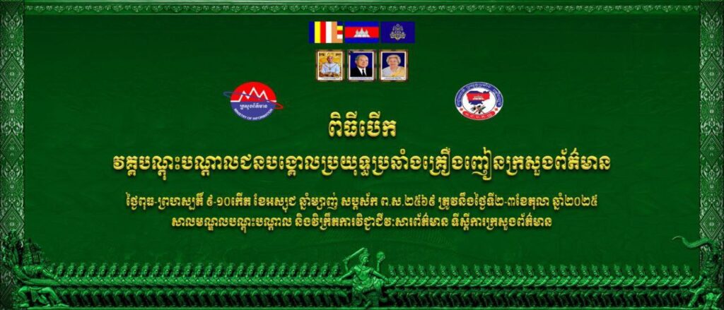 ក្រសួងព័ត៌មាន សហការជាមួយអាជ្ញាធរជាតិប្រយុទ្ធប្រឆាំងគ្រឿងញៀន នឹងរៀបចំវគ្គបណ្តុះបណ្តាលរយៈពេល ២ថ្ងៃ (ថ្ងៃទី ១–២ តុលា ២០២៥) នៅសាលមណ្ឌលបណ្តុះបណ្តាល និងវិក្រឹតការ វិជ្ជាជីវៈសារព័ត៌មានទីស្តីការក្រសួងព័ត៌មាន។ វគ្គនេះមានគោលបំណងបណ្តុះបណ្តាលជនបង្គោល ដើម្បីក្លាយជាអ្នកនាំសារអប់រំសុច្ឆន្ទៈ អំពីការផ្សព្វផ្សាយអប់រំ បង្ការ ទប់ស្កាត់ និងប្រយុទ្ធប្រឆាំងគ្រឿងញៀន ជូនដល់សាធារណជនគ្រប់មជ្ឍដ្ឋានឱ្យបានយល់ដឹងកាន់តែទូលំទូលាយ។