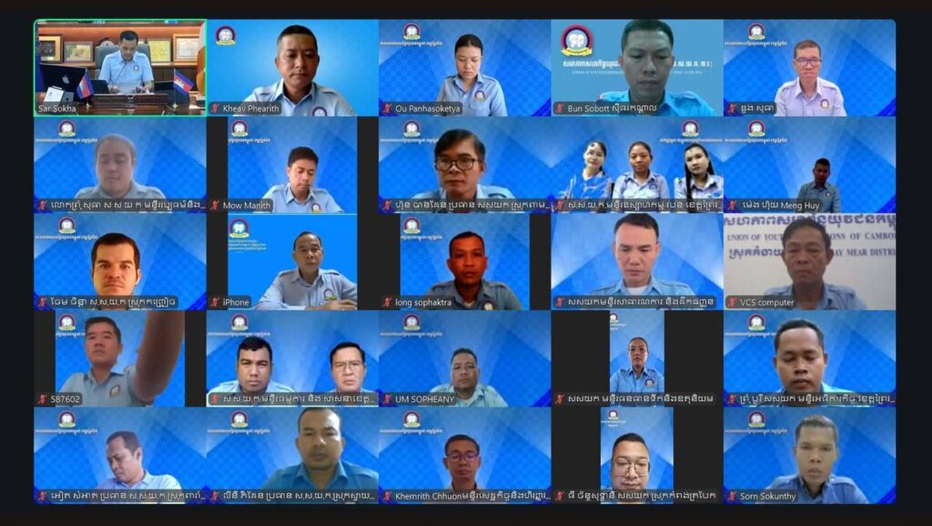 នៅព្រឹកថ្ងៃសៅរ៍ ទី៤ ខែតុលា ឆ្នាំ២០២៥ នេះ ឯកឧត្តមអភិសន្តិបណ្ឌិត ស សុខា អនុប្រធានសហភាពសហព័ន្ធយុវជនកម្ពុជា ទទួលបន្ទុកខេត្តព្រៃវែង បាត់ដំបង និងខេត្តបន្ទាយមានជ័យ និងជាតំណាងឯកឧត្តម ហ៊ុន ម៉ានី ប្រធានសហភាពសហព័ន្ធយុវជនកម្ពុជា (ស.ស.យ.ក.) បានអញ្ជើញដឹកនាំកិច្ចប្រជុំត្រួតពិនិត្យវឌ្ឍនភាពការងារប្រចាំនព្វមាស ឆ្នាំ២០២៥ និងលើកទិសដៅបន្ត របស់សហភាពសហព័ន្ធយុវជនកម្ពុជា ខេត្តព្រៃវែង តាមប្រព័ន្ធវីដេអូហ៊្សូម (Zoom)។