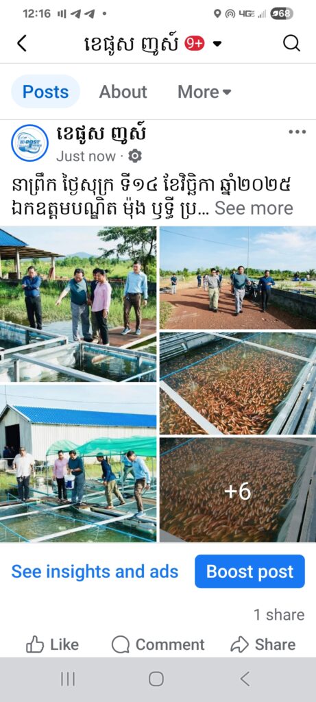 នាព្រឹក ថ្ងៃសុក្រ ទី១៤ ខែវិច្ឆិកា ឆ្នាំ២០២៥ ឯកឧត្តមបណ្ឌិត ម៉ុង ឫទ្ធី ប្រធានគណៈកម្មការទី៣នៃព្រឹទ្ធសភា និងជាប្រធានក្រុមសមាជិកព្រឹទ្ធសភាប្រចាំភូមិភាគទី៧ បានអញ្ជើញដឹកនាំក្រុមការងារបច្ចេកទេសកសិកម្ម មកពិនិត្យកសិដ្ឋានចិញ្ចឹមត្រីមួយកន្លែងស្ថិតនៅភូមិឫទ្ធី១ ឃុំកែវផុស ស្រុកស្ទឹងហាវ ខេត្តព្រះសីហនុ ដែលបានចិញ្ចឹមត្រីដូចជាត្រីទីឡាបយ៉ាក្រហម ត្រីពោ ត្រីប្រា ត្រីរ៉ស់ ជាដើម ក្នុងគោលបំណងសំដៅរួមចំណែកកាត់បន្ថយការនាំចូលត្រីពីបរទេស។ ការសាកល្បងចិញ្ចឹមត្រីជាជំហានៗនេះ គិតមកដល់បច្ចុប្បន្នបានជាងមួយលានក្បាល ដោយប្រើប្រាស់ចំណីផលិតដោយរោងចក្រផលិតចំណីសត្វរបស់ក្រុមហ៊ុន ម៉ុង ឫទ្ធី គ្រុប។ ឯកឧត្តមបណ្ឌិត បានបញ្ជាក់ថា សកម្មភាពទាំងអស់នេះ គ្រាន់តែជាការបង្ហាត់បង្រៀនដល់បុគ្គលិក កម្មករ សិស្ស និស្សិត អោយមានចំណេះដឹងផ្នែកចិញ្ចឹមត្រីនេះតែប៉ុណ្ណោះ។