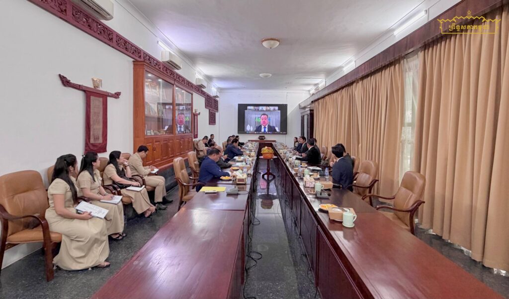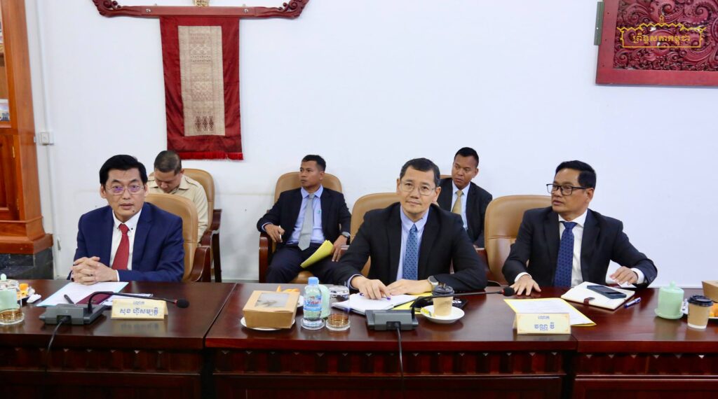 នារសៀលថ្ងៃចន្ទ ៤កើត ខែមិគសិរ ឆ្នាំម្សាញ់ ពុទ្ធស័ករាជ២៥៦៩ ត្រូវនឹងថ្ងៃទី២៤ ខែវិច្ឆិកា ឆ្នាំ២០២៥ គណៈកម្មការផែនការ វិនិយោគ កសិកម្ម ធនធានទឹក ឧតុនិយម អភិវឌ្ឍន៍ជនបទ និងបរិស្ថាន នៃព្រឹទ្ធសភា (គណៈកម្មការទី៣) ដឹកនាំដោយឯកឧត្តមបណ្ឌិត ម៉ុង ប្ញទ្ធី ប្រធានគណៈកម្មការ និងឯកឧត្តមបណ្ឌិត ឡូយ សុផាត ប្រធានគណៈកម្មការទី៣រដ្ឋសភា បានអញ្ជើញជួបពិភាក្សាការងារជាមួយគណៈប្រតិភូក្រុមហ៊ុនជប៉ុន FOREX SENDAI ដឹកនាំដោយលោក OSHIMA YOSHIKAZU ប្រធានក្រុមហ៊ុនOshima LLC និងលោក KARIND KEIICHI ប្រធានក្រុមហ៊ុនFOREX SENDAI តាមប្រព័ន្ធវីដេអូ នៅសាលប្រជុំពិសេសខាងក្រោម វិមានព្រឹទ្ធសភា។